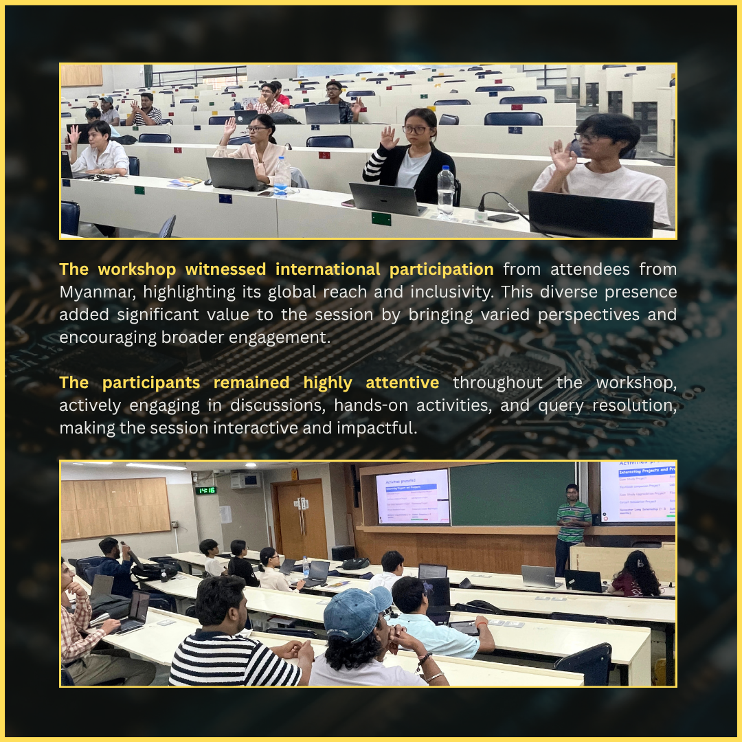 The discussions further explored how integrating eSim EDA within academic curricula can strengthen practical learning, enable research driven projects and foster collaboration between institutions and industry. The interactive sessions encouraged students and faculty to adopt open-source technologies, reinforcing the importance of self-reliant and innovation driven education ecosystems.