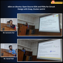 Mr. Sumanto shared insights on open-source tools and initiatives under FOSSEE, highlighting how platforms like eSim enable students and researchers to explore circuit design and simulation. Other speakers included Vipin Madangarli (SemiX IIT Bombay Fellow; Former Director & India Site CTO, GlobalFoundries), Prof. Saurabh Lodha (P.K. Kelkar Chair Professor, IIT–OSU Frontier Research Center), and Karthik UC (HackerFab, IIT Bombay). The session offered valuable guidance on research, internships, and career opportunities in the semiconductor domain.
